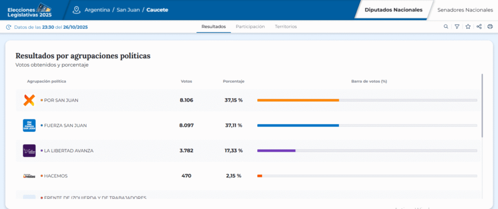 Las últimas elecciones legislativas nacionales dejaron a La Libertad Avanza (LLA) en primer lugar a nivel nacional. La polarización peronismo/libertarios dejó a los espacios llamados dialoguistas en posición de definir hacia dónde tejen sus alianzas. En ese sentido, en San Juan el escenario no mostró una polarización tan marcada, sino que se configuró un panorama de tercios que dio como gran ganador al peronismo y ubicó al oficialismo provincial en segundo lugar.