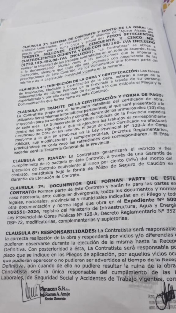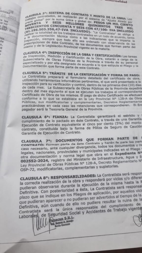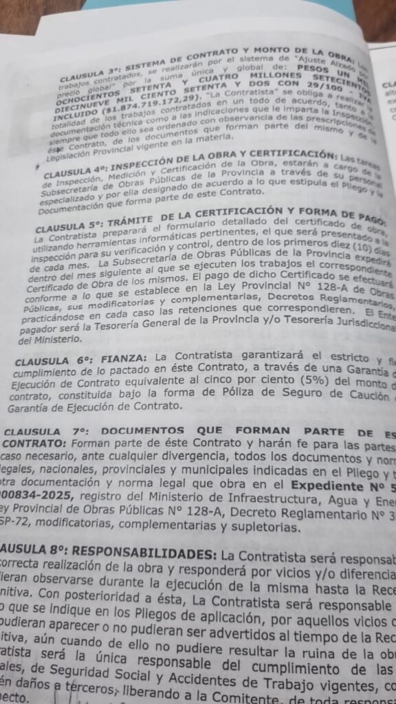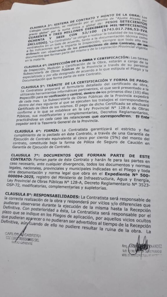 Los contratos que sustentan todo esto, firmados entre 2024 y 2025 con la Subsecretaría de Obras Públicas provincial, suman un total aproximado de 5.162 millones de pesos con IVA incluido. El desglose, según los documentos: