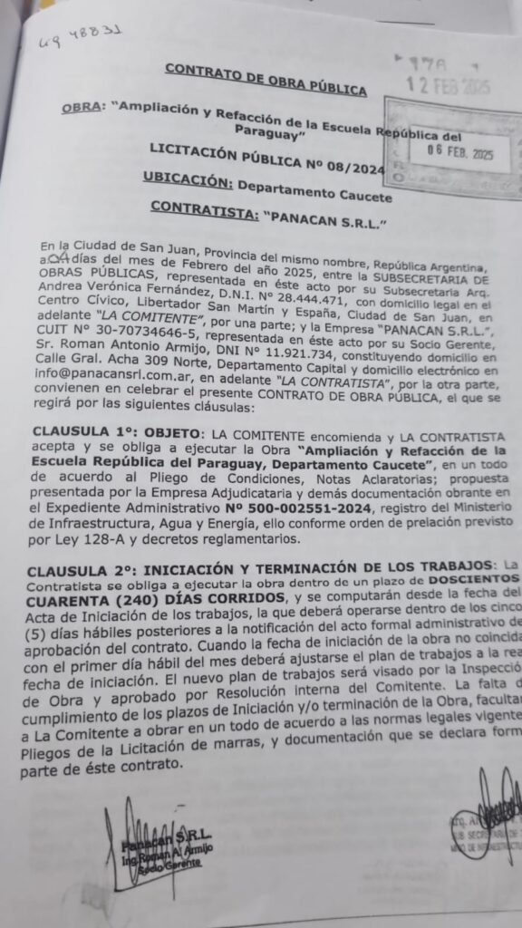 - Ampliación de la Escuela República del Paraguay (LP N° 08/2024): $730 millones — Panacan S.R.L.