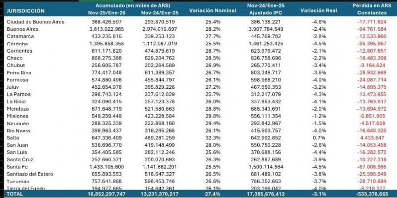 No se trata de una proyección aislada: un informe atribuido al diputado nacional Guillermo Michel calculó que el impacto total de la reforma alcanzaría los $3,1 billones en 2026, de los cuales $1,7 billones corresponderían a las provincias por coparticipación.