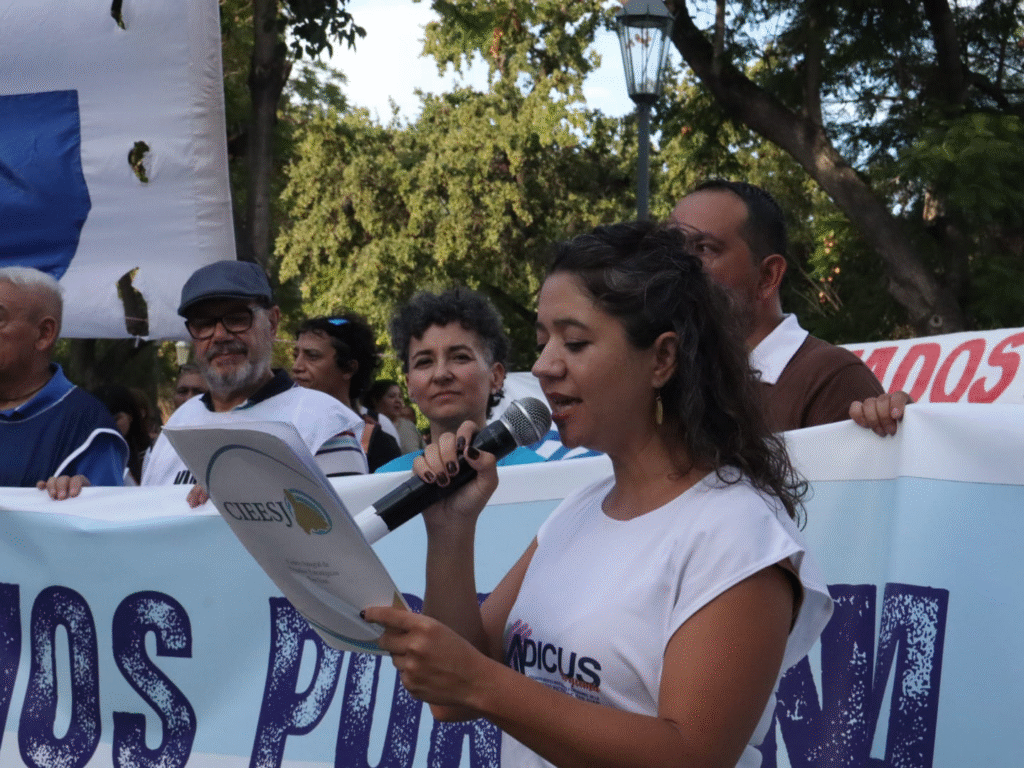 Durante el acto en la Plaza 25 de Mayo, Edith Liquitay y Emilio Furlán, referentes gremiales de ADICUS, advirtieron que el Gobierno ha señalado como «enemigo» al pueblo para imponer un modelo de «esclavismo moderno» sin resistencia organizada. «Saben que la fuerza del pueblo trabajador está en su unidad y por eso apuntan a destruir a las organizaciones», denunciaron, señalando también la «traición» de los legisladores que acompañan el desguace del Estado.