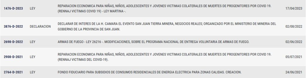 El caso de la diputada Fabiola Aubone es un poco distinto: tiene 21 leyes presentadas como firmante en los 4 años que lleva en el puesto. También es vocal de la comisiones de agricultura y ganadería; de comunicaciones e informática; de deportes; de industria; de legislación general; de minería; de recursos naturales y conservación del ambiente humano; y de transportes.
