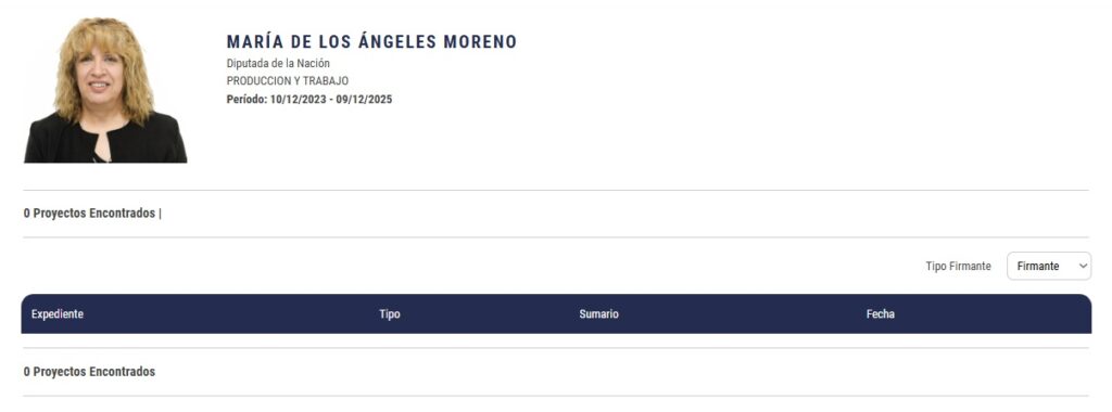 La diputada orreguista María de los Ángeles Moreno llegó al Congreso en 2023 como suplente en reemplazo de Susana Laciar, quien había resultado electa para ocupar el cargo de intendenta de la Capital.