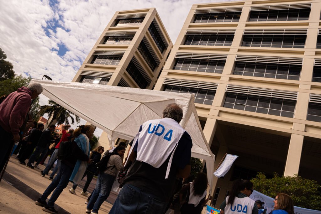 En ese contexto, los docentes instalaron una carpa blanca simbólica, en alusión a una de las postales más emblemáticas de la lucha docente en Argentina durante las crisis económicas más profundas del país.